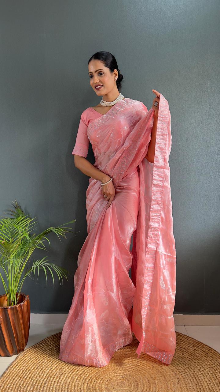 Pink Sarowski - (1 Minute Ready To Wear Saree)