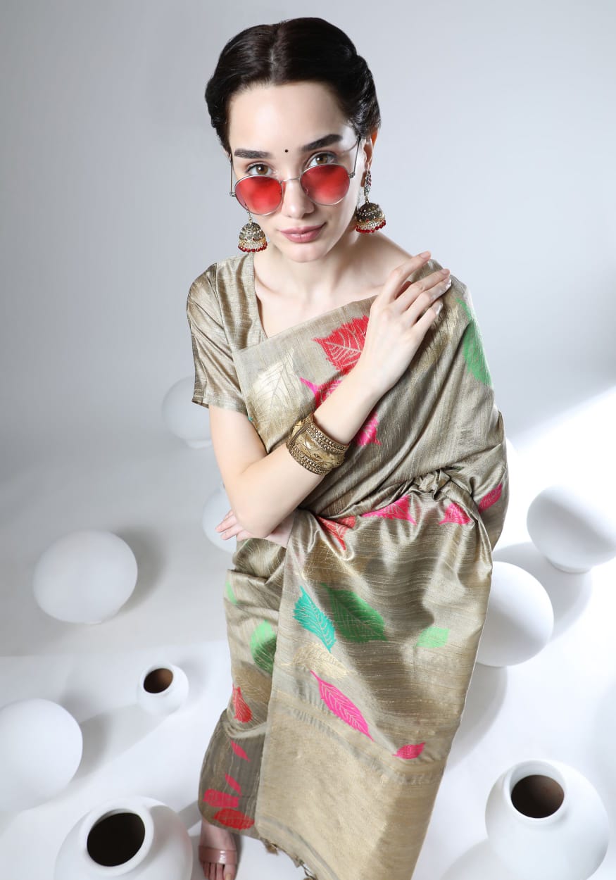 Grey Leafs (1 Minute Ready To Wear Saree)