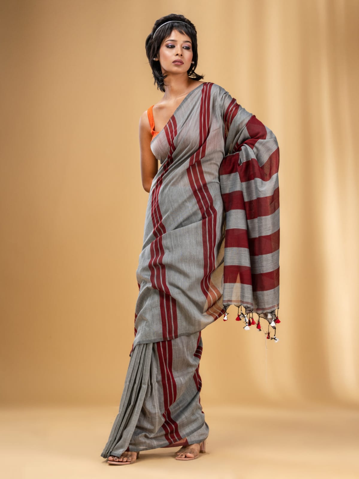 Grey Blue Flowers (1 Minute Ready To Wear Saree)