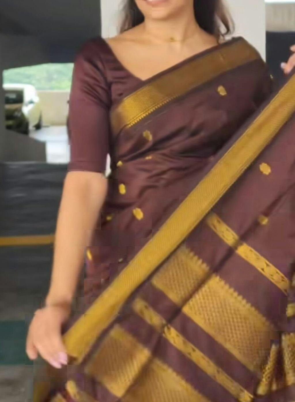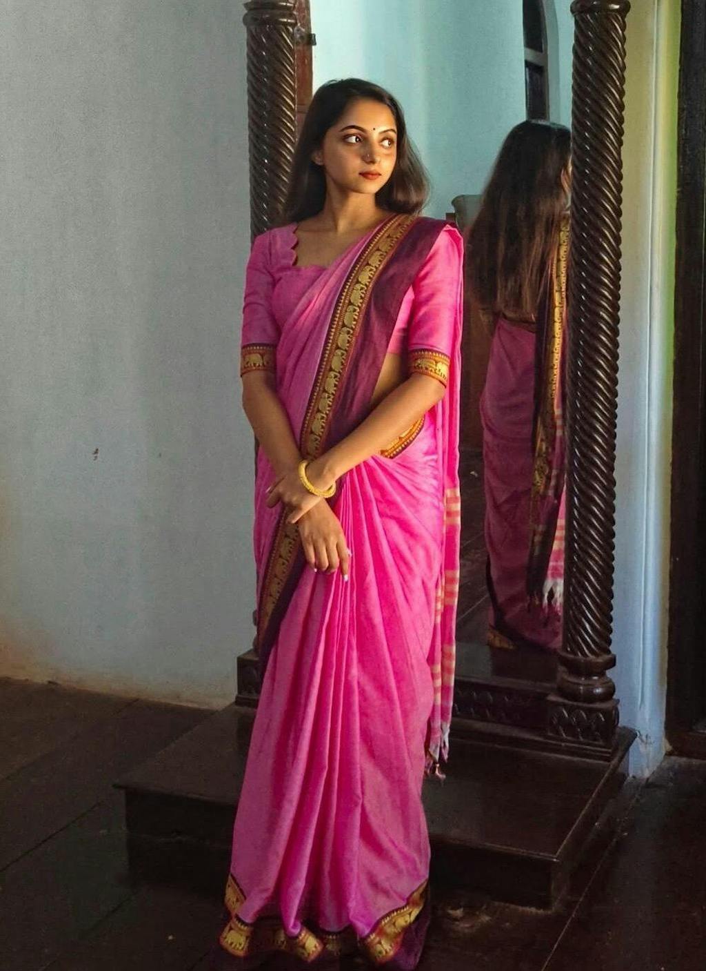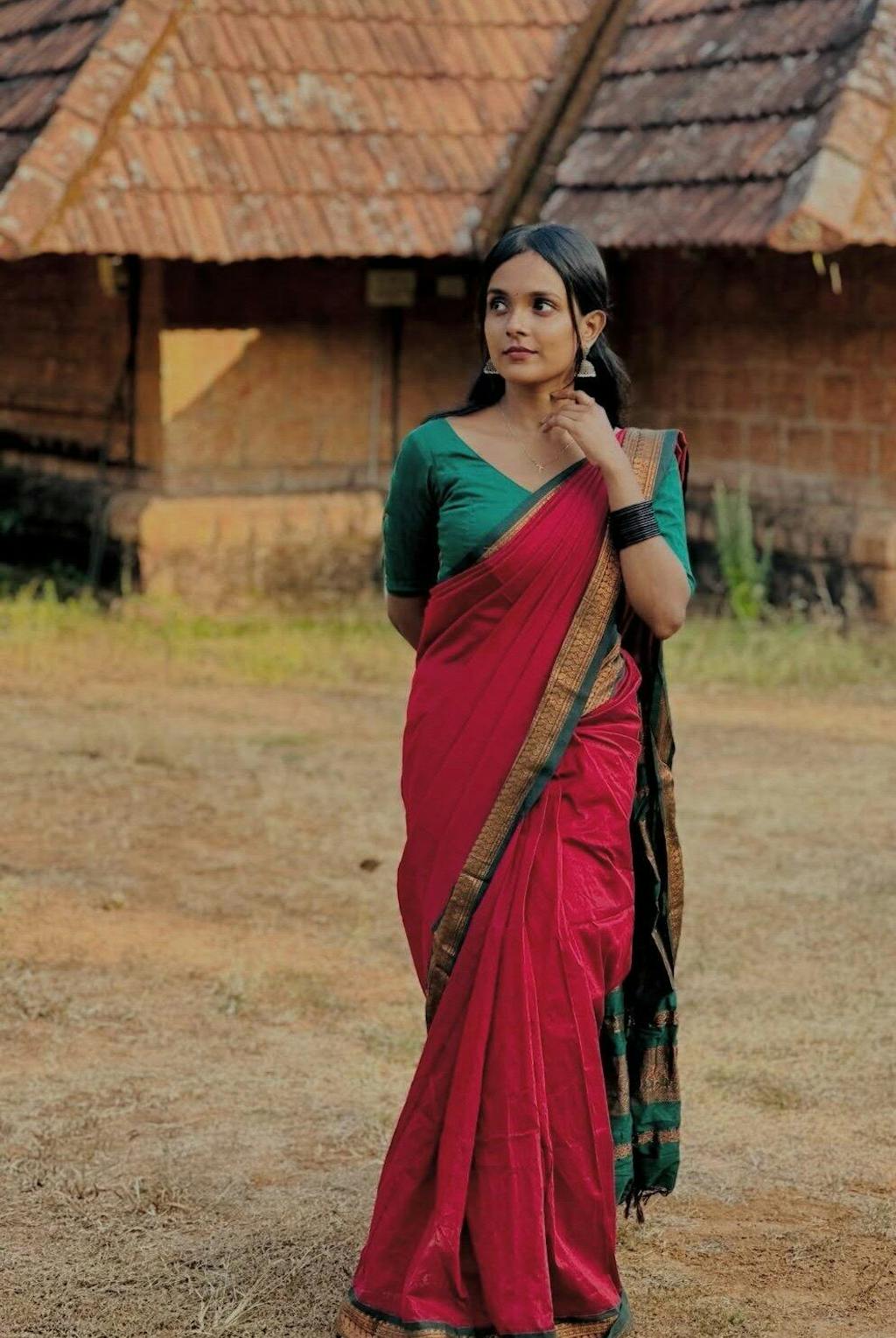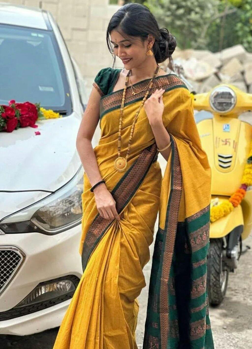 Bought a maroon/green one for a temple visit. It felt very traditional and auspicious. Everyone asked me where I got it from. It looks like a pure Gadwal silk saree but at half the weight and price. Love it.